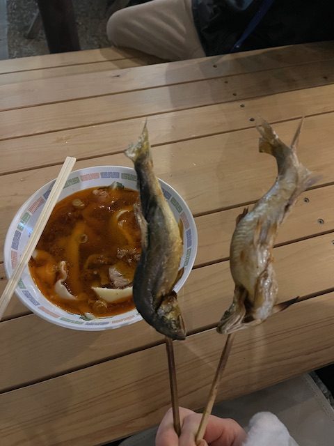 私が絶対に食べたかった鮎の塩焼きと両親おすすめ刀削麵です。おいしかった💕