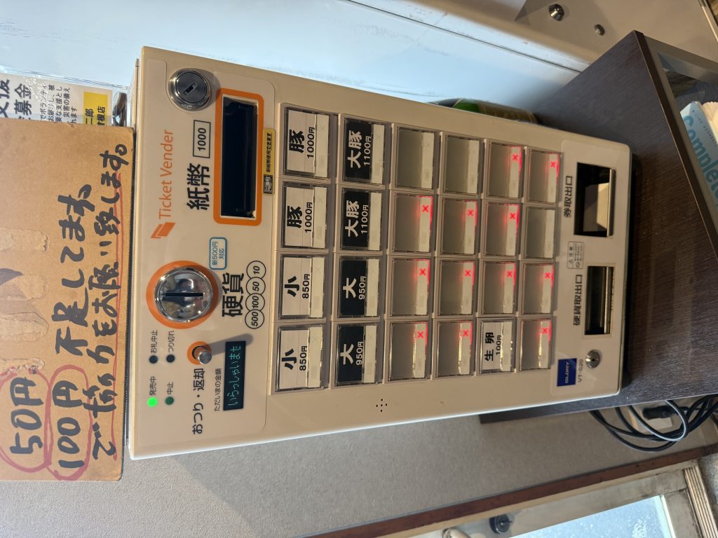券売機はこちら!今のご時世2000円近くする店舗も増えてきた中で1000円以下で食べれるのはありがたいですよね